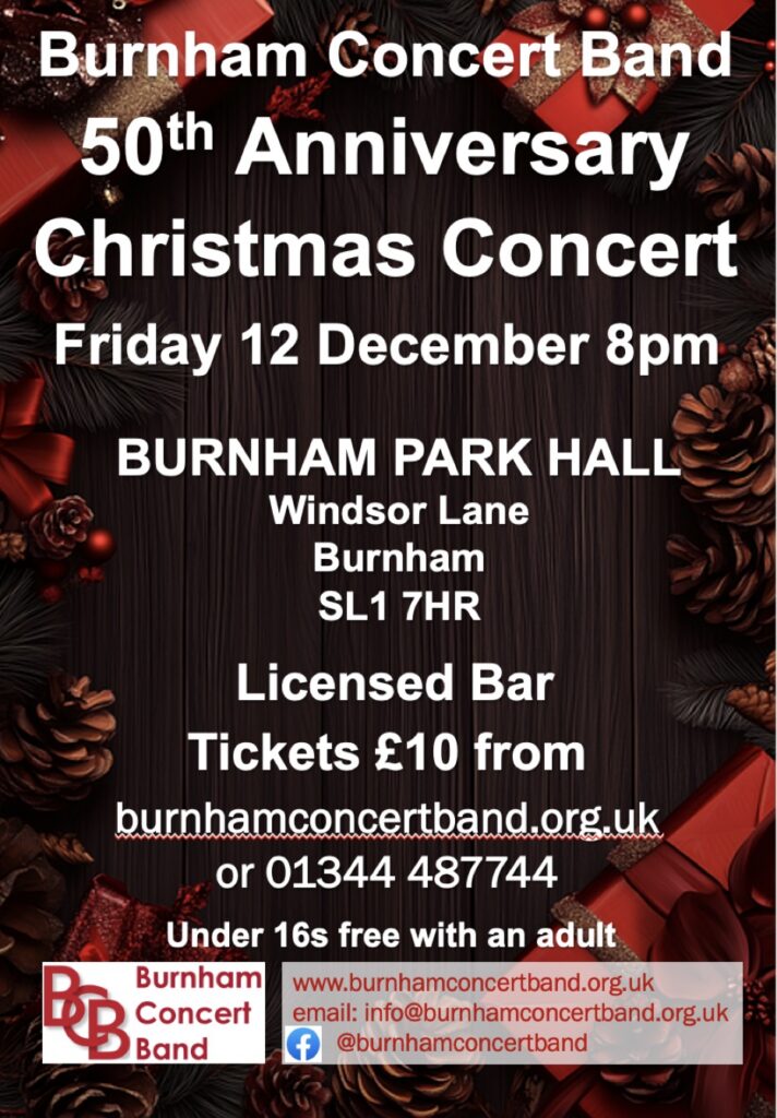Burnham Concert Band is a community wind band based in Buckinghamshire (between Maidenhead and Slough), Founded in 1975. We have a varied and ever changing repertoire which ranges from classical through military marches all the way through swing to tunes from musicals and movies.