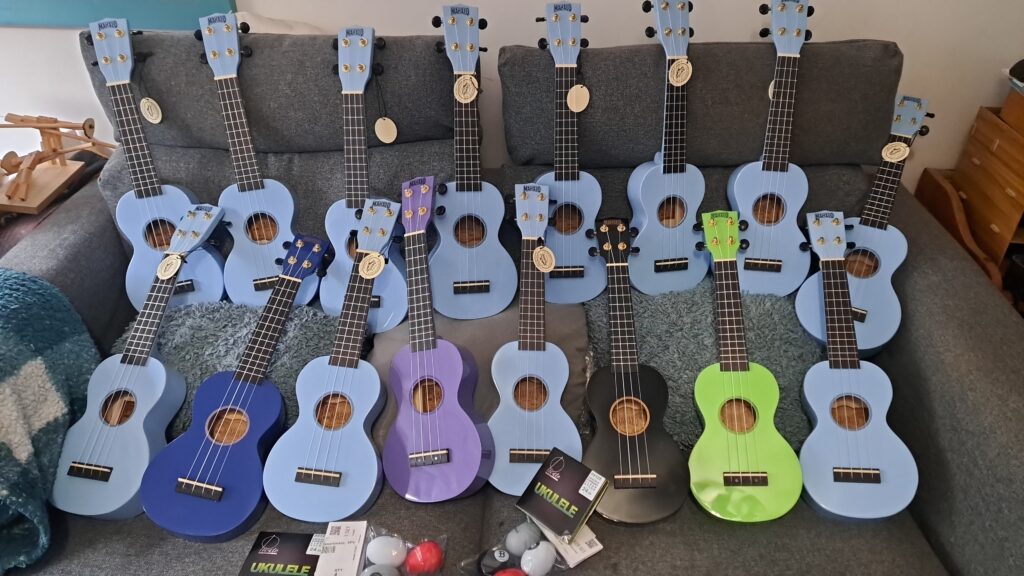 This years recipient is St Peter’s CofE Primary who took delivery of 16 Ukulele’s and some shakers.